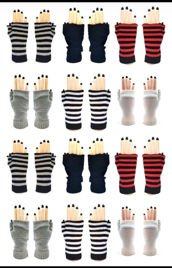 Mitones guantes rayados tejidos