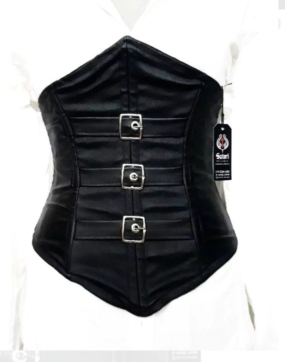 Corset bajo busto realizado en ecocuero con hebillas ornamentales y acordonado en la espalda para ajustar. Ballenas plasticas de 0,5 cm